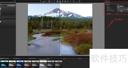 4、 第四步:调整滤镜预设。先在右侧预设菜单中选取合适滤镜,再对各项参数进行精细调节。