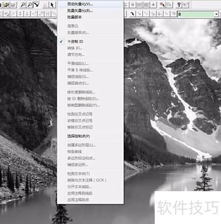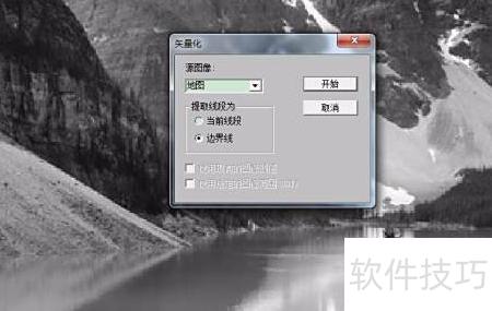 3、 在菜单栏中选择矢量下的自动矢量化,弹出窗口后选边界线,点击开始即可。