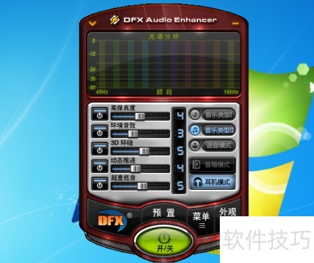 7、 已为大家详细介绍dfx音效插件的使用方法与设置步骤。这款插件不仅能显著提升音频体验,还能带来自主调节的乐趣。只需点击界面中央即可快速开启或关闭插件,也可通过菜单进入设置选项,操作简便直观,适合各类用户轻松上手,享受更优质的音乐效果。