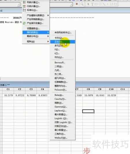 9、 在工具栏依次选择计算、随机分布、正态,弹出正态分布设置窗口。