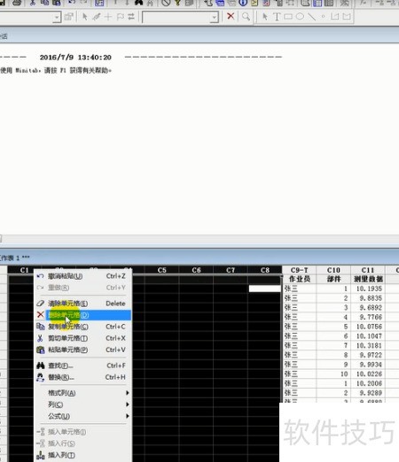 14、 在工作表中,于C9、C10、C11列下方依次填入作业员、部件、测量数据,并清除C9和C10列中的全部原有数据。