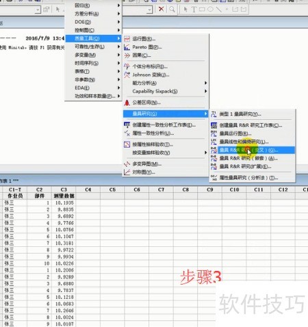 16、 在工具栏中,依次选择统计菜单下的质量工具,进入量具研究,点击量具R&R研究 交叉(G),系统将弹出对应的设置对话框。