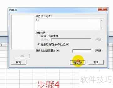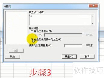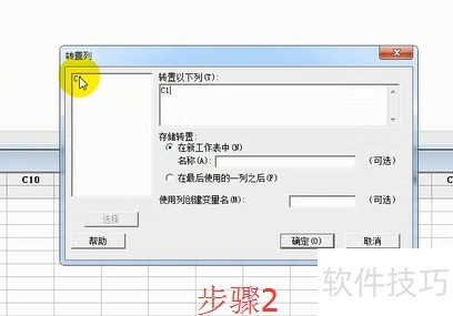 7、 双击C1,在转置以下列(T)的空白区域生成C1,选择在最后使用的一列之后(F),点击确定,工作表中随即生成从C3到C12的共10列数据。