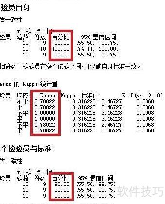 8、 属性一致性分析要求检验员自身及与标准的一致性均超过90%,且Kappa值须大于0.8,以确保评估结果的可靠性和准确性。
