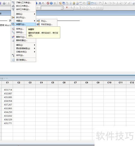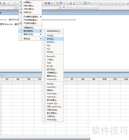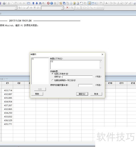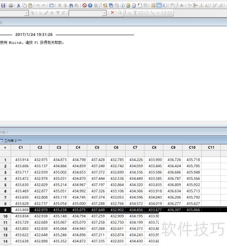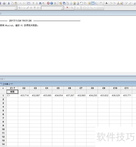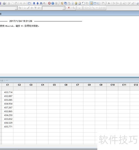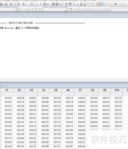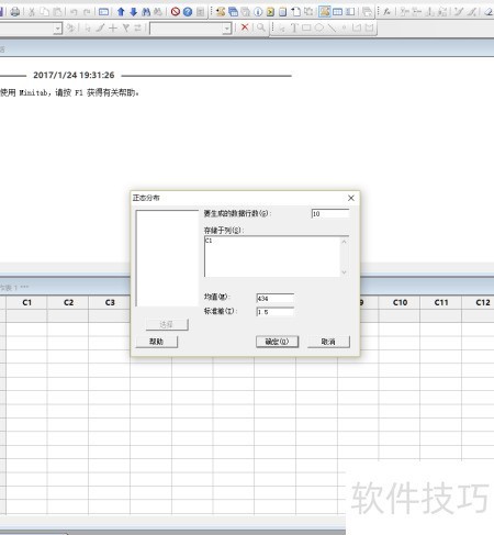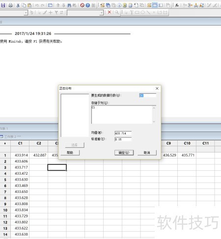 2、 使用MINITAB生成10个服从正态分布的随机数据,均值设为434,标准差为1.5,并将结果存储于第一列中,用于后续分析与计算。