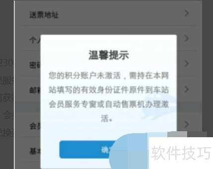 2、 成功激活后需退出12306APP并重新登录,进入会员信息页面查看积分。初始显示为0分属正常现象,因刚完成激活,积分将在后续乘车或符合条件后逐步累积。