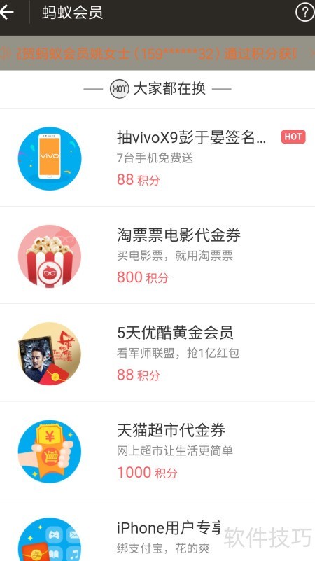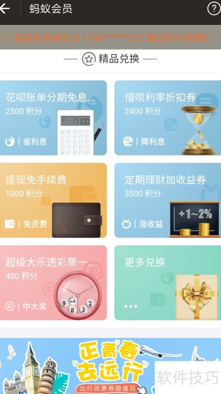 2、 点击蚂蚁会员,选择相应选项即可进入积分兑换页面。