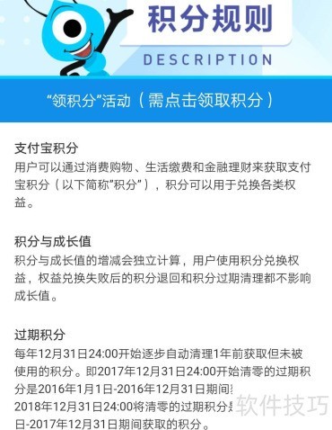 1、 支付宝积分可通过购物消费、生活缴费及理财等方式获得。
