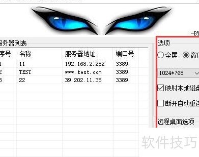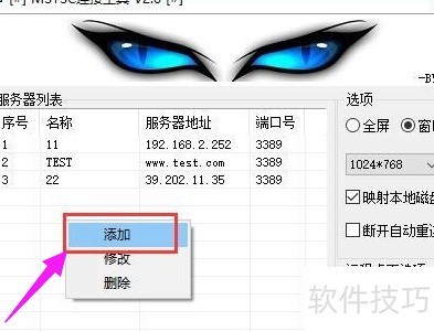 2、 解压后启动软件,点击添加按钮,输入需连接的服务器信息。
