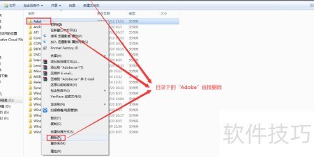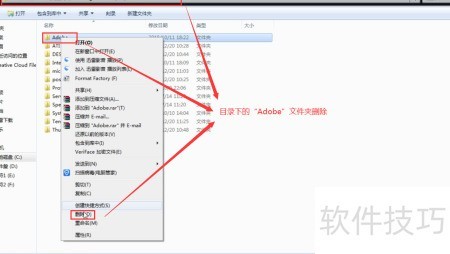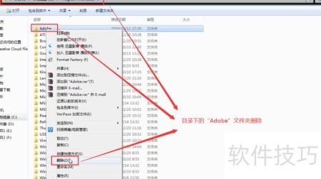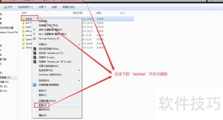 2、 删除C盘程序文件目录中的Adobe文件夹即可完成操作。