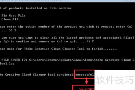 17、 当屏幕显示successfully时,表示Adobe已彻底卸载完成。