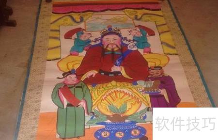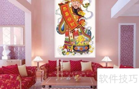 3、 贴财神像前需将其展开铺平,确保画面端正整洁。