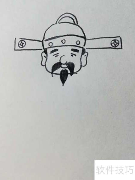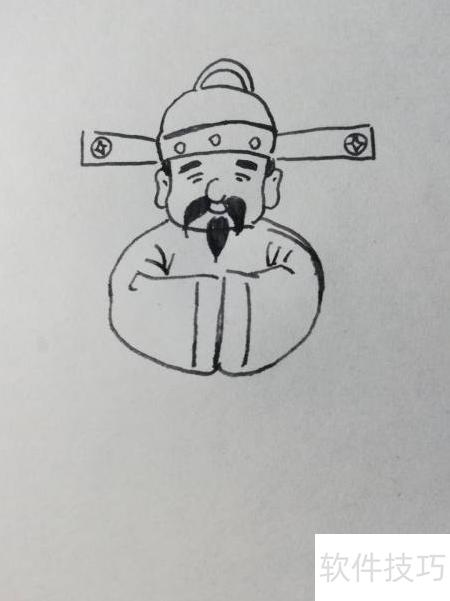3、 第三步,画财神面部五官。