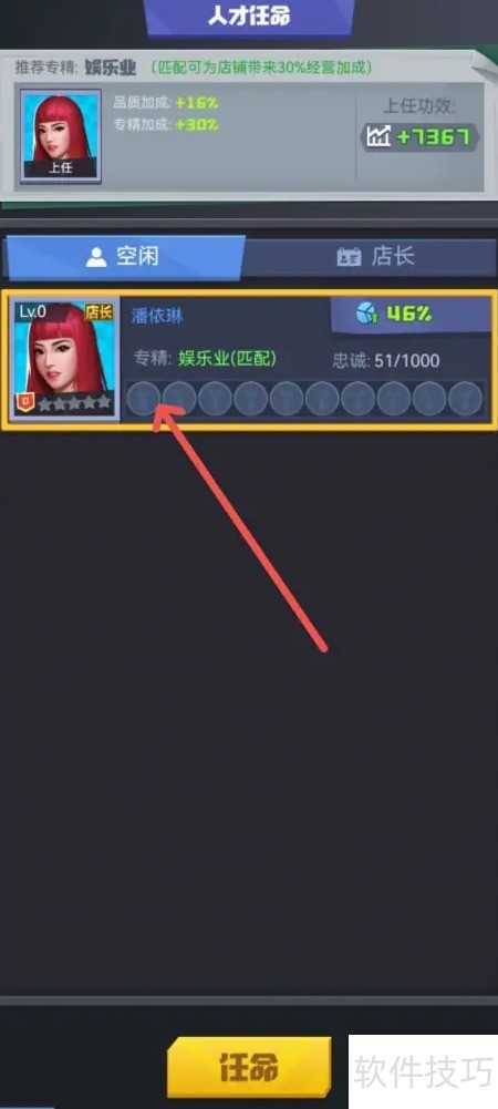 2、 进入人才任命页面,选择店长人选并点击任命。