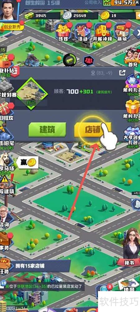 1、 打开明日大亨,进入游戏,购地并点击选择店铺。