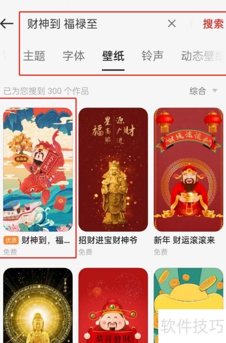 2、 打开网页后搜索财神壁纸,选择财神手机壁纸即可。