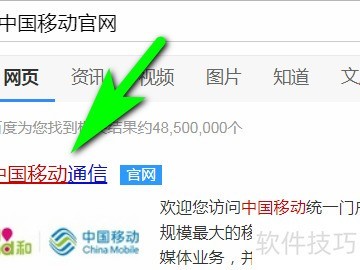 1、 在浏览器地址栏输入中国移动官网网址后按回车进入。