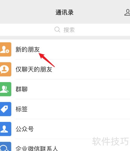 2、 点击上方新朋友选项进入。