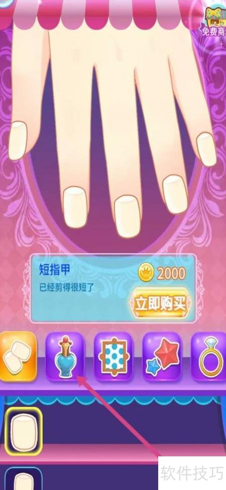 2、 进入美甲店页面后,选择并点击指甲油图标。