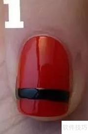 3、 第三步:按图示画一条黑线,将指甲均分为两部分。