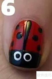 5、 用白色指甲油按图示点出六星瓢虫的双眼。