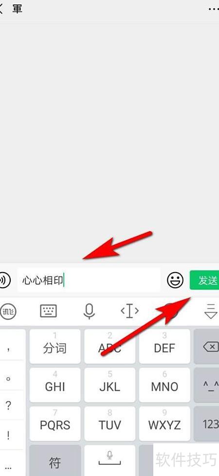 10、 在输入框内键入心心相印,随后点击发送按钮完成操作。