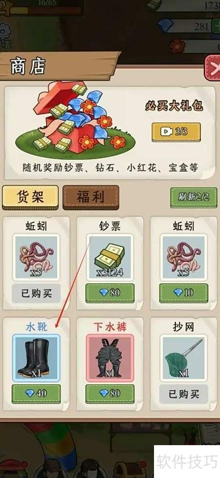 2、 进入商店,点击选购水靴。