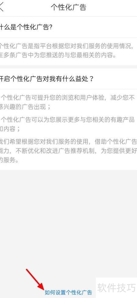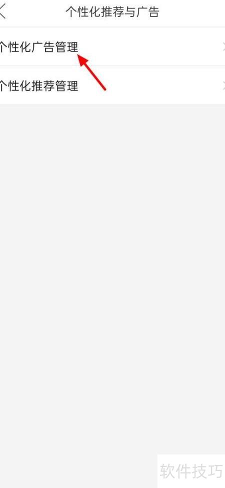 5、 进入广告设置页面,点击个性化广告选项进行配置。