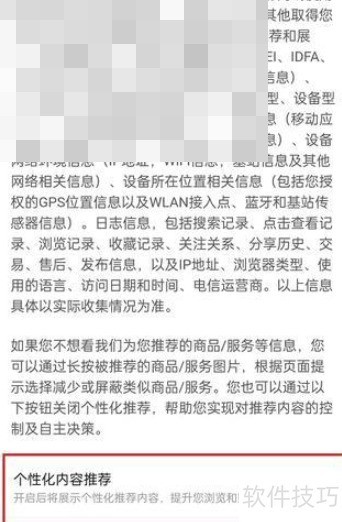 6、 进入个性化推荐管理,关闭个性化内容推荐的开关即可停止推荐。