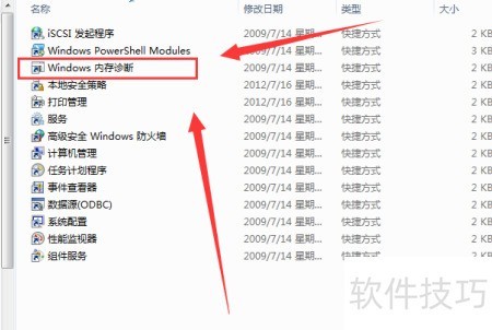5、 打开管理工具后,右侧即可找到电脑内存诊断工具,具体位置所示。