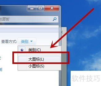 3、 点击类别按钮,在弹出的菜单中选择大图标选项,操作所示。