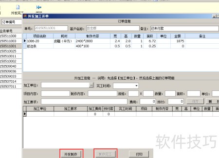 2、 外协加工简单来说就是将承接的业务委托给外部单位完成。进入外协界面后,可查看所有相关订单,双击任意一条可查看详情。选择外发制作表示已将该订单交由他人生产,系统中的外发状态会同步更新。当点击制作完工后,代表加工已结束,产品准备就绪,接下来便可安排发货交付。整个流程至此完成。