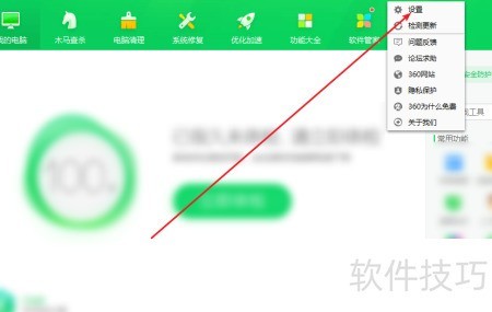 1、 启动360安全卫士,点击右上角菜单按钮。