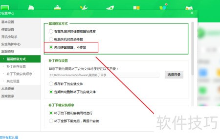 9、 点击选择关闭弹窗提醒,不修复选项。