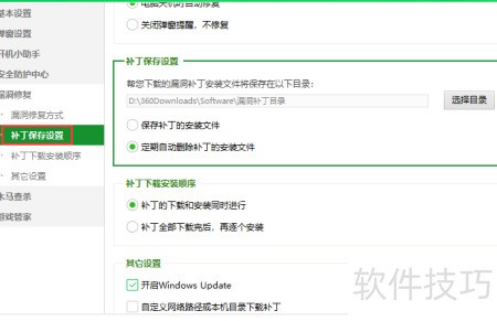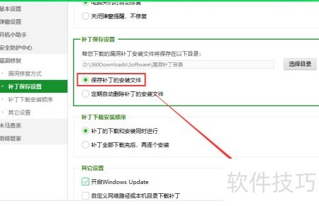 360安全卫士可设置保存漏洞修复补丁的安装文件,具体操作方法如下。