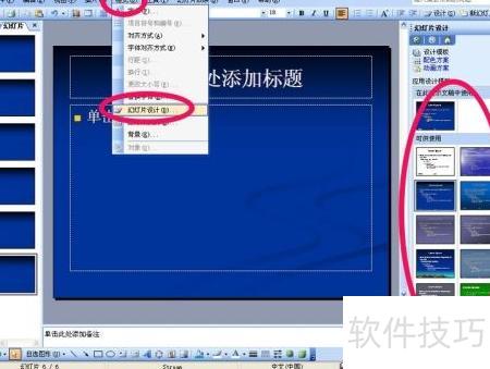 7、 完成课件初稿后,可选择合适的幻灯片模板进行美化,此步骤可根据需要自行决定是否执行。