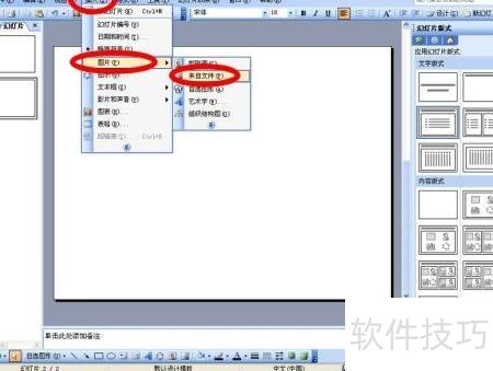 5、 在幻灯片中插入图片,只需在电脑中找到所需图片,按提示步骤导入即可完成操作。