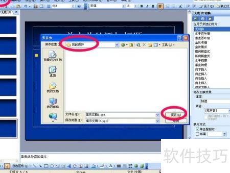 9、 完成课件后,请将PPT保存至您创建的文件夹内。
