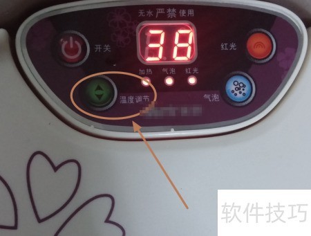 4、 开启沐足盆电源时,务必确保三脚插头接地,以防触电危险。根据需求将水温调节至所需最高温度,安全使用。