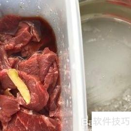 1、 牛霖先用凉水冲洗,再逆着纹理切成片或丁。