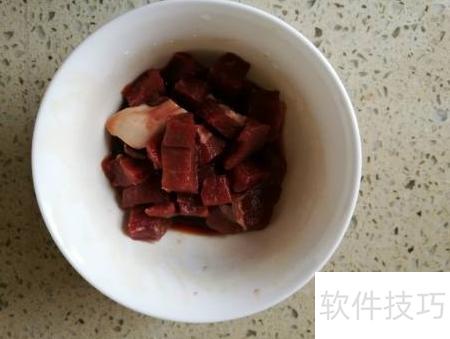 3、 牛霖用盐、生抽、生粉腌制片刻