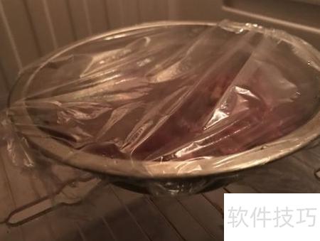 4、 放置一晚后,用保鲜袋包好牛霖放入冰箱冷藏,风味更佳;若急于烹饪,腌制十五分钟也可。