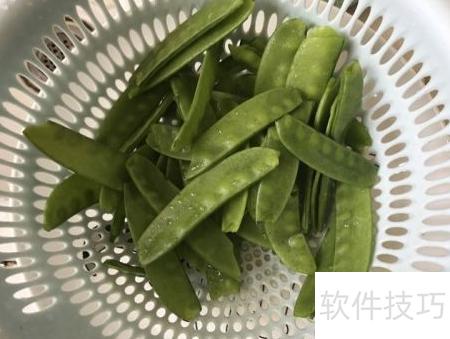 5、 挑选鲜嫩的荷兰豆,去除两头后仔细清洗干净。洗净后充分沥干水分,可防止炒制时热油飞溅。保持食材干爽再下锅,不仅能提升口感,还能确保烹饪过程安全顺畅,使荷兰豆清脆可口。