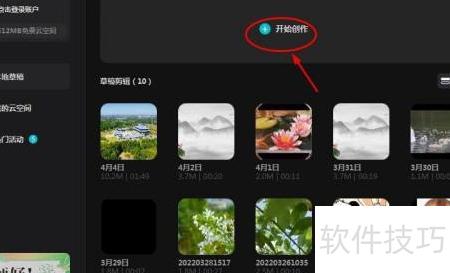2、 点击创作,导入视频至凤针。