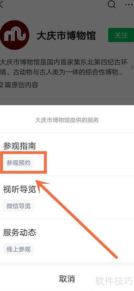 3、 搜索大庆博物馆,点击大庆市博物馆公众号即可进入,操作所示。