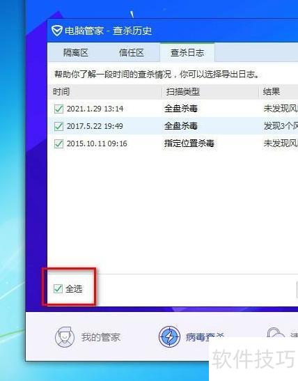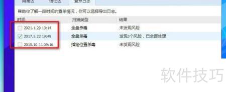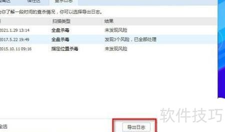 当日志数量较多时,可通过杀毒软件的导出功能,将查杀记录保存至电脑以便查看和检索。