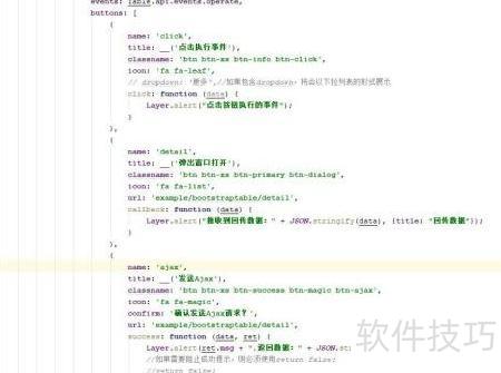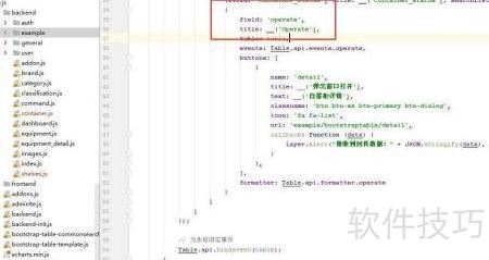 4、 修改按钮或在表格中添加新按钮,均需调整JS文件,在operate列中增加相应按钮即可。