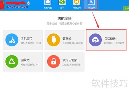 2、 打开百度云管家,进入功能宝箱开启自动备份。