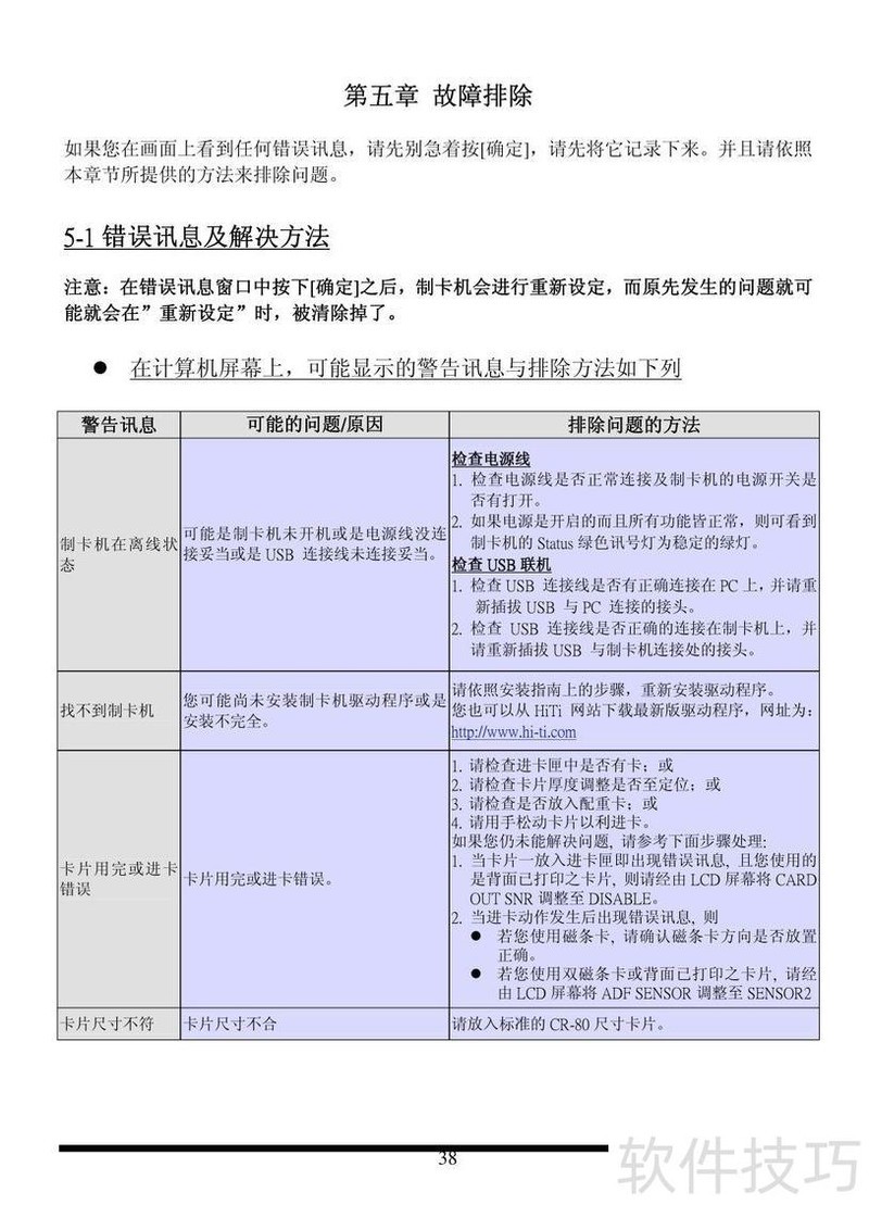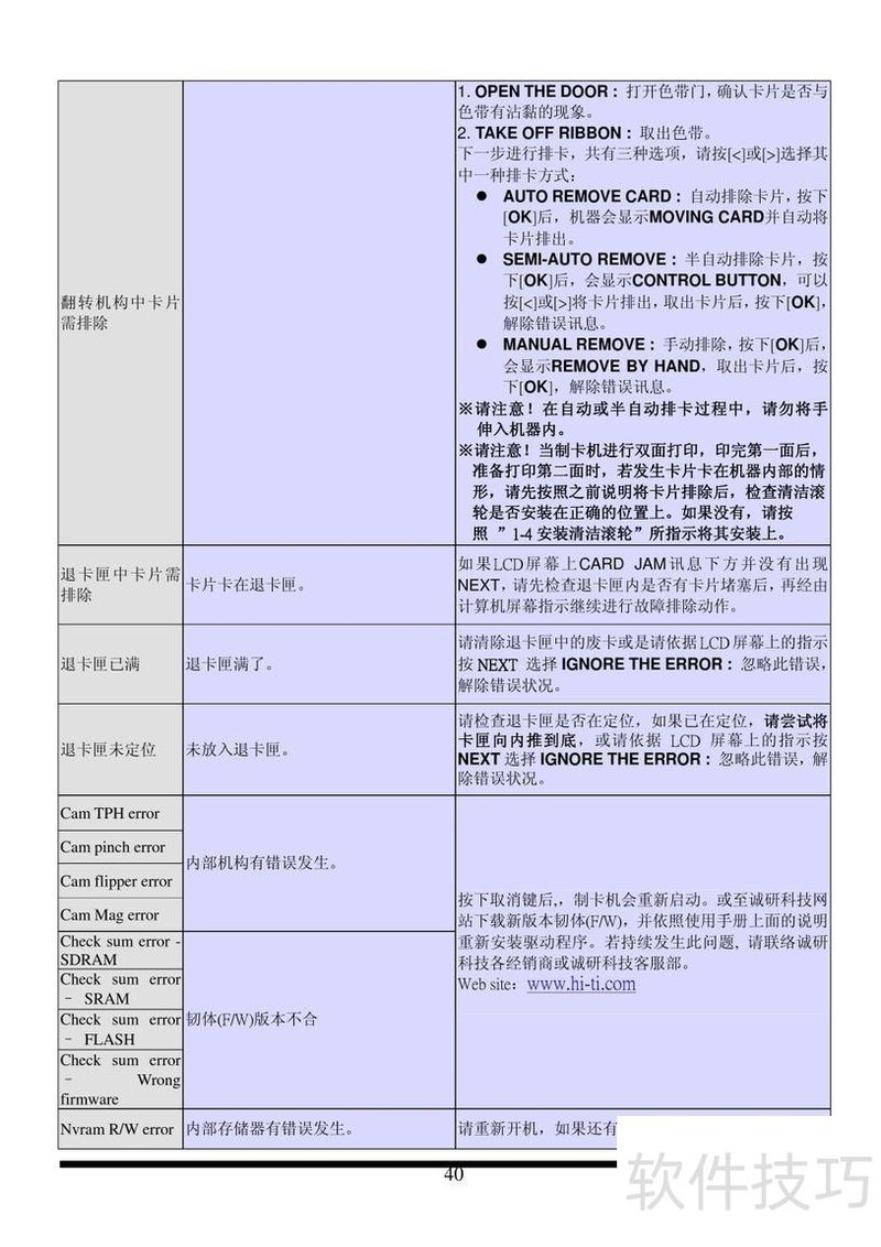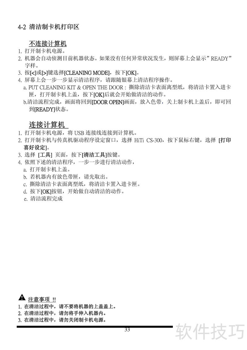 、 本文是HiTi Card Printer CS-300制卡机使用手册的节选,详细介绍设备操作步骤及常见问题处理方法,帮助用户快速掌握制卡流程并解决使用中的各类故障。