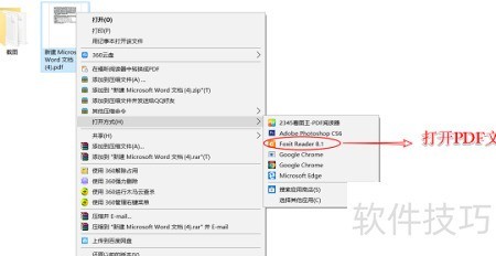 1、 右键点击PDF文件,选择打开方式,从列表中选取福昕阅读器即可打开文档。